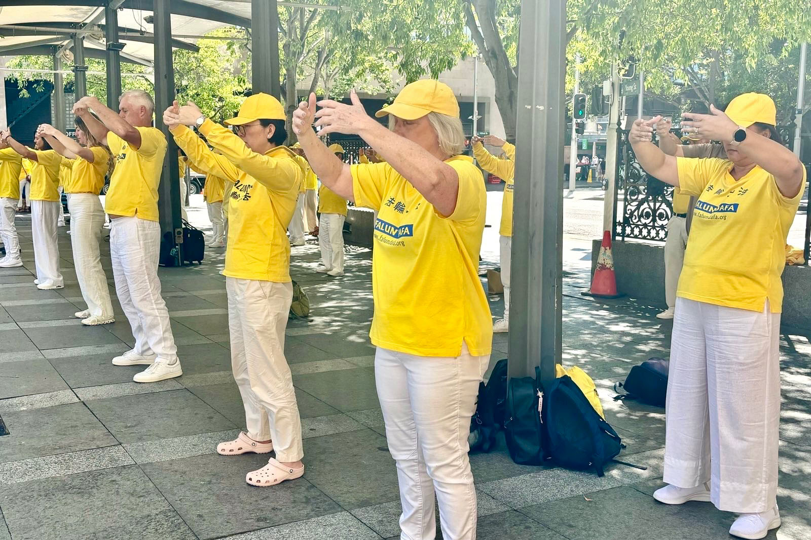 Practitioners held an event next to Customs House in downtown Sydney on October 11, 2025.