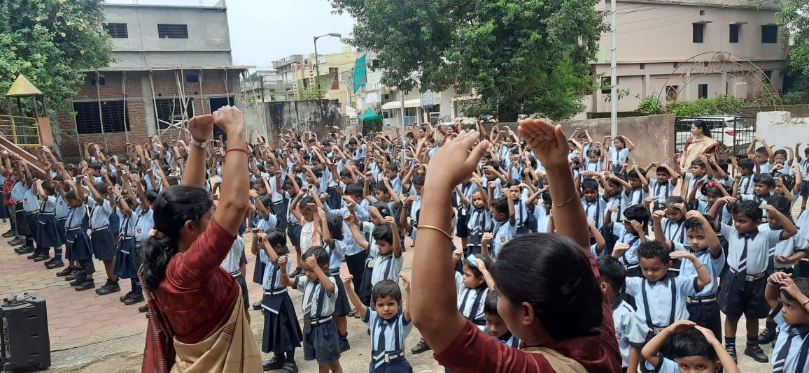 Students of School of Scholars in Nagpur did the exercises with practitioners.