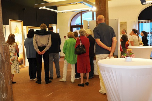 (Minghui.org) “Very touching and impressive” is how numerous visitors described the artworks in The Art of Zhen Shan Ren (Truthfulness-Compassion-Forbearance) International Exhibition, which was on display on September 19-28, 2025, in the historic armory in Donauwörth. More than 500 people viewed the artworks, some by chance while strolling through town or on a sightseeing tour, and others after learning of the exhibit through flyers, posters, social media, or the newspaper.