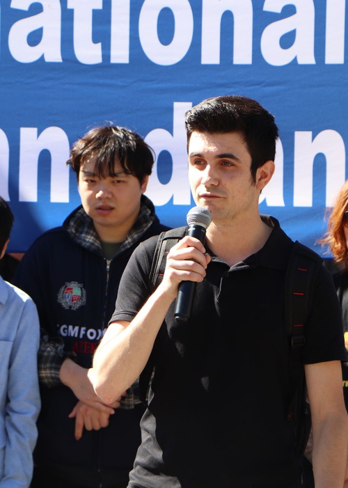 Bogdan spoke at the rally and described how practicing Falun Gong helped him quit his drug addiction and find a new life, “The principles of Truthfulness, Compassion, and Forbearance completely changed my life. Without Falun Dafa, I might still be a degenerate drug addict and thief, wasting my life. But I’ve been drug-free for five years, have a full-time job, and I reunited with my family.