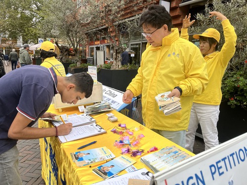 The practitioner showed him a photo of a Chinese girl in exile in Germany who had her left lung removed after being tricked by a hospital. The practitioner told the man that live organ harvesting is still happening in China and that everyone is in danger if people remain silent and turn a blind eye. The older man squeezed his eyes shut several times, seemingly trying to hold back tears. “This is shocking!” he said. He signed the petition to help stop the forced organ harvesting.