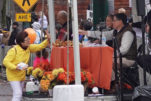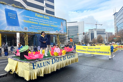 She said she was happy to see Falun Dafa practitioners’ entry in the parade. “I hope they can remind everyone that during this holiday season, everyone needs more of Truthfulness-Compassion-Forbearance. Whether it is during shopping or time spent with family and friends, they should keep these principles in mind.