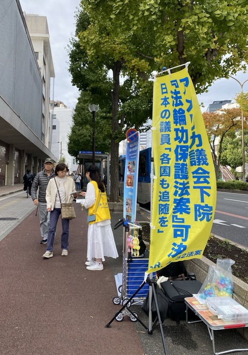 The Kawasaki Citizens’ Festival is a major event in Kawasaki City, Kanagawa Prefecture, lasting three days and attracting nearly 500,000 visitors. Falun Gong practitioners displayed banners and posters near the event venue with messages such as “Falun Dafa Is Good,” “The Truth About the CCP’s Forced Organ Harvesting,” and distributed informational materials at major intersections.