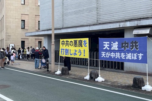 Surprised by the banners: “The CCP Is Doomed,” many Chinese tourists stopped to take pictures.