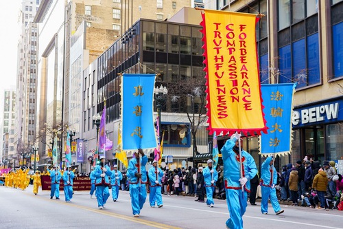 (Minghui.org) The 91st Chicago Thanksgiving Parade was held on November 27, 2025. It was the coldest day of the winter so far in Chicago, yet many spectators lined the streets to watch.