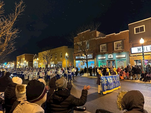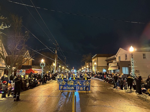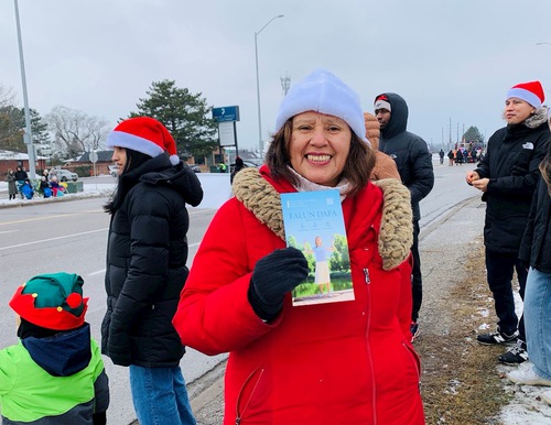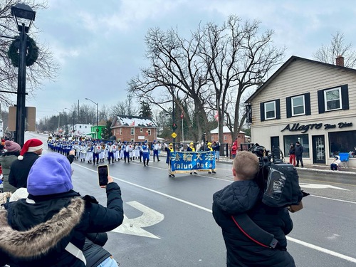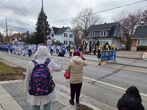 (Minghui.org) The Tian Guo Marching Band participated in Santa Claus Parades in five cities, including Pickering, Ajax, Markham, Bolton, and Stouffville, on November 22 through December 6, 2025. Many people learned about Falun Dafa (Falun Gong) at the events.