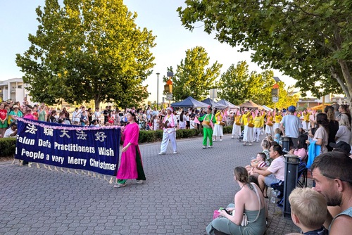 (Minghui.org) Falun Dafa practitioners in Western Australia participated in two Christmas Parades at the end of 2025. They set up a booth and participated in the Parade in Ellenbrook on December 13. The next day they joined the parade in Bunbury, in which they won the first place in the Walking Group category.