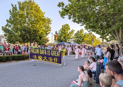 Practitioners joined the Christmas parade that evening to introduce Falun Dafa.