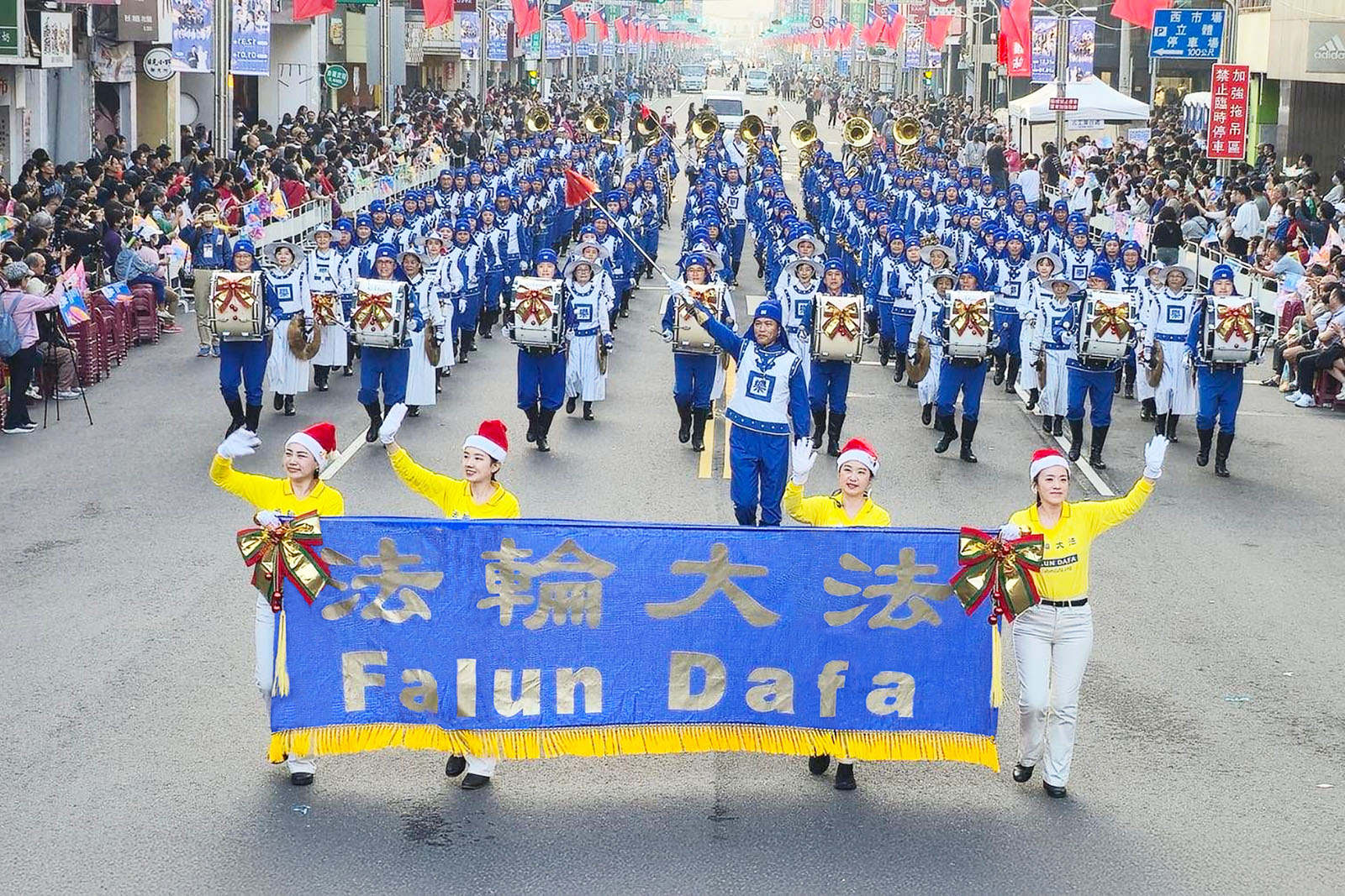 (Minghui.org) The Tian Guo Marching Band made another memorable appearance at the 33rd Chiayi City International Band Festival on Saturday, December 20, 2025. The band has participated in the event for more than a decade. This year, the Tian Guo Marching Band was made up of more than 200 Falun Dafa practitioners from all parts of Taiwan, and they were once again a highlight of the festival.