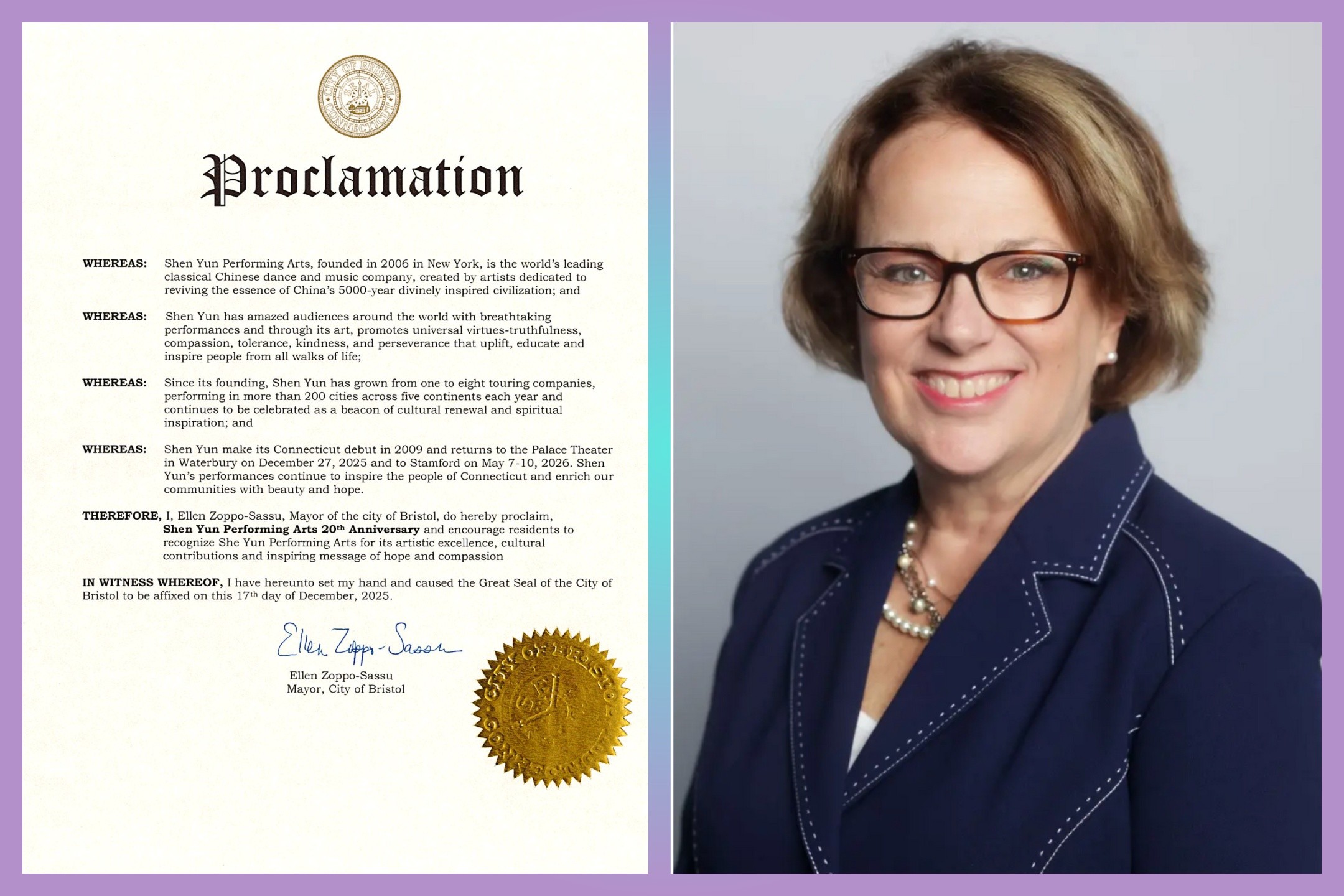 In December 2025, Mayor Ellen Zoppo-Sassu of Bristol, Connecticut issued a proclamation for Shen Yun Performing Arts.