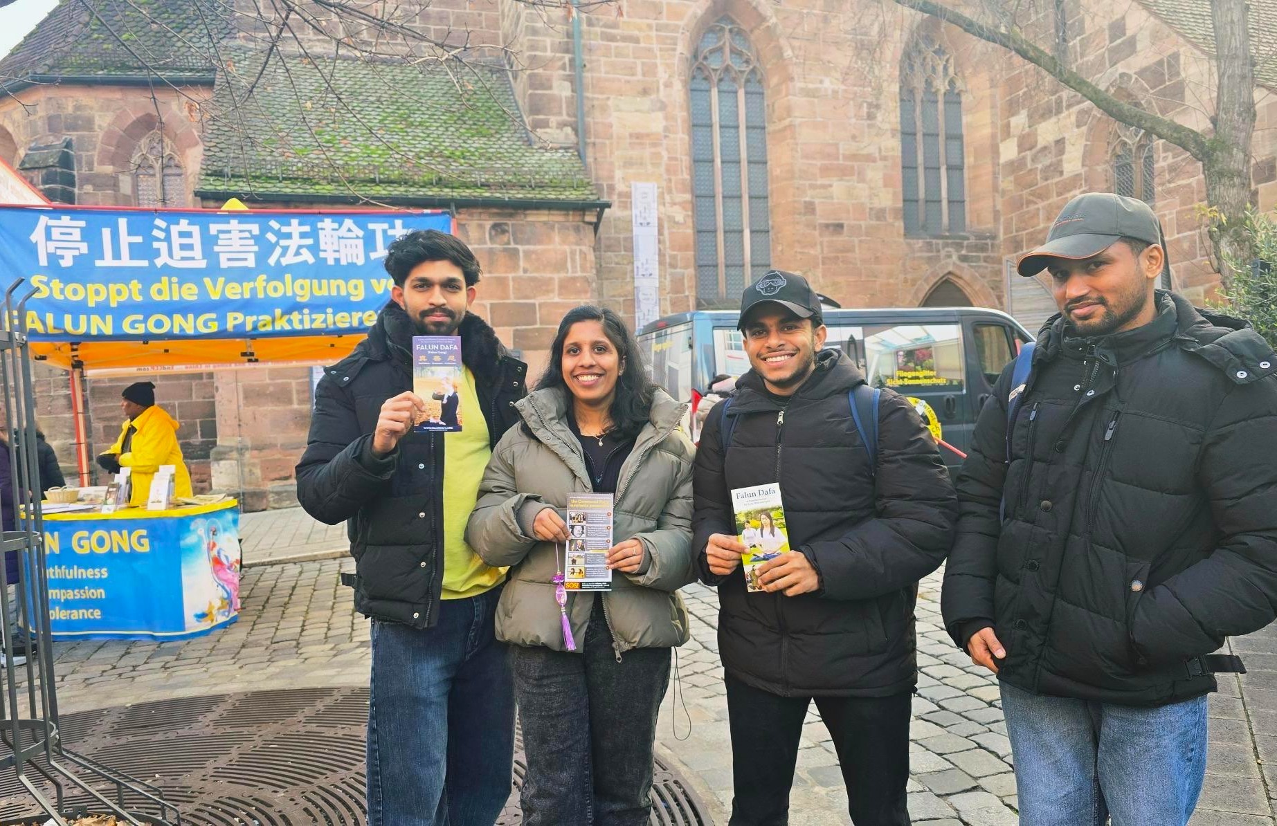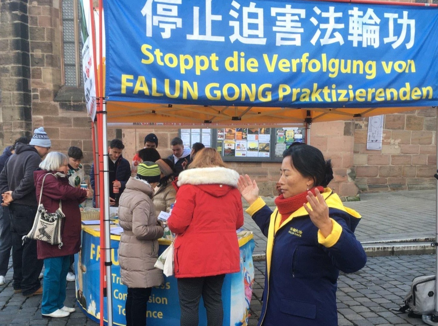 (Minghui.org) Practitioners in Nuremberg held a vigil at the Christmas Market in the center of the city on December 20, 2025. They introduced Falun Dafa (also known as Falun Gong) and raised awareness of the Chinese Communist Party’s (CCP) persecution.
