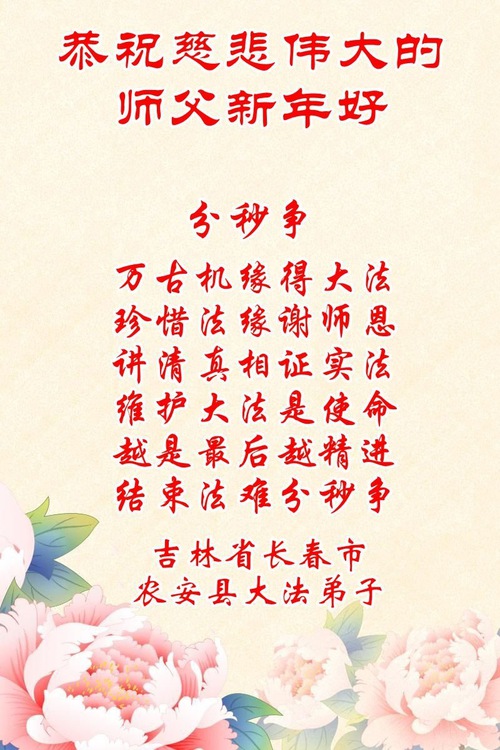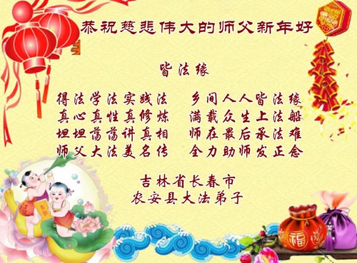 Falun Dafa Practitioners from Changchun City Respectfully Wish Master Li Hongzhi a Happy New Year (112 Greetings)