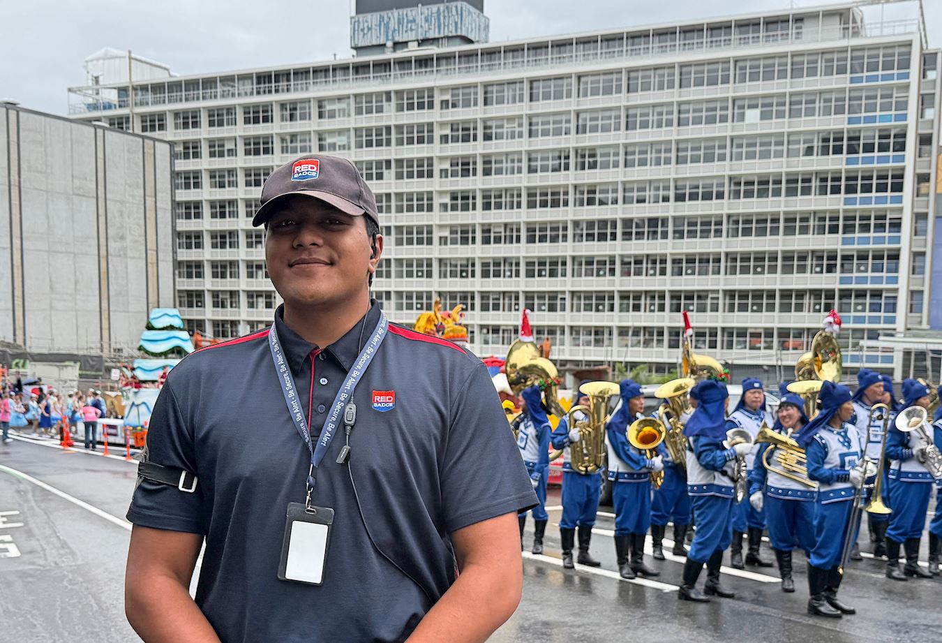Kamryn, who worked security for the Auckland Farmers Christmas Parade, said, “My great-grandmother is Chinese, so I’m pleased to see Chinese people in this parade. The band outfits are gorgeous.”