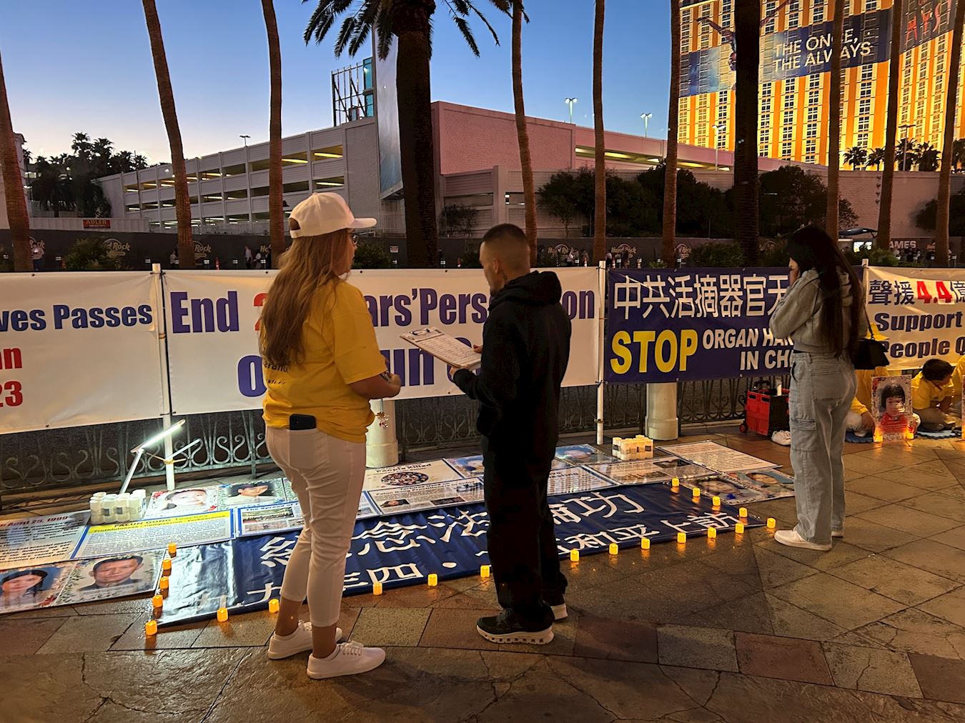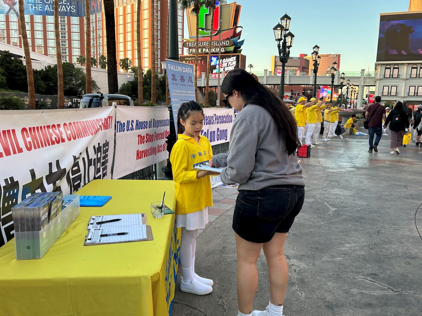(Minghui.org) Falun Dafa practitioners held a rally and did the exercises together on the world-famous Las Vegas Strip on April 19, 2025, to commemorate the 26th anniversary of the April 25 appeal. They condemned the Chinese Communist Party’s (CCP) persecution and commemorated those practitioners who died.
