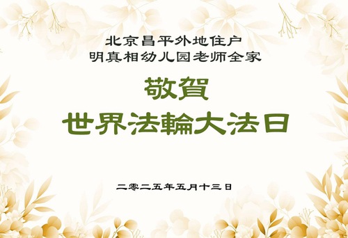 (Minghui.org) With the arrival of World Falun Dafa Day, practitioners and non-practitioners alike sent their greetings to wish revered Master Li a happy birthday and to celebrate the 33rd anniversary of Falun Dafa’s public introduction.