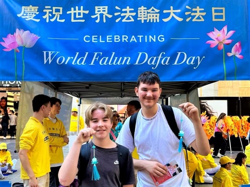 Max Brentnall and Max Griffith said that they like Falun Dafa’s principles, Truthfulness, Compassion, and Forbearance. “When I feel low, this can help me.” Brentnall said, “I feel that this is very meaningful and I will find out more about it.” He also said that the Falun Dafa booth is, “Very attractive and practitioners are very friendly.”