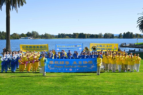 (Minghui.org) Practitioners celebrated World Falun Dafa Day by holding an event at Hamilton Lake Domain Park on May 3, 2025.