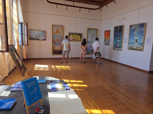 During the ten-day exhibition in Sozopol, tourists and residents visited the gallery and learned about the meaning and essence of the individual themes depicted in the paintings. Through the exhibition, many people learned about the persecution of the Falun Gong spiritual group in China and gained insight into the exhibition’s mission to humanity.
