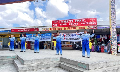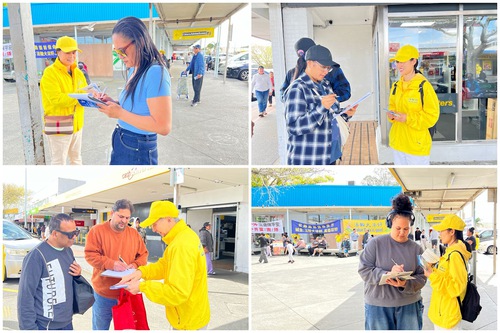 (Minghui.org) Practitioners held an event on September 27, 2025 at Otara Market in Auckland, New Zealand. They did the Falun Dafa exercises, and gave waist drum and dragon dance performances to celebrate the more than 450 million Chinese people who have quit the Chinese Communist Party (CCP) organizations. Many people agreed with Falun Dafa’s principles of Truthfulness-Compassion-Forbearance, and called on people to oppose the CCP’s suppression of the practice.