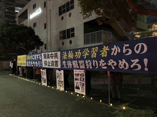 The events were held in the afternoon and evening in front of the Chinese consulates in Nagasaki and Fukuoka.