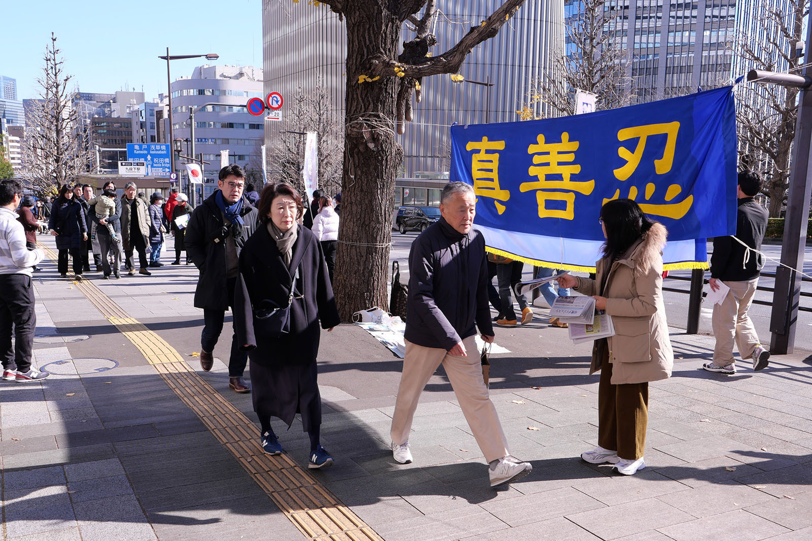 (Minghui.org) Japanese Falun Gong practitioners met in Kudanshita in Tokyo on New Year’s Day 2026, to talk to people who were attending Hatsumōde (the Japanese New Year prayer ritual) about the persecution of Falun Gong in China, and to call on all sectors of society to help stop the persecution.