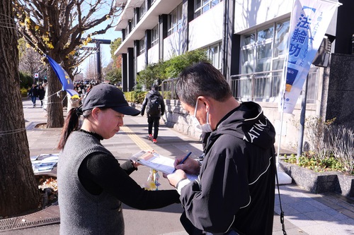 Practitioners distributed fliers and clarified the truth to people in Kudanshita.