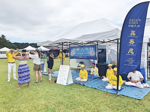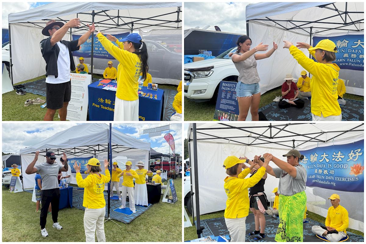 (Minghui.org) Practitioners participated in the annual Waitangi Day celebration in the Bay of Islands from February 5 to 6, 2026. They set up a booth, demonstrated the exercises, and introduced Falun Dafa to festival visitors.
