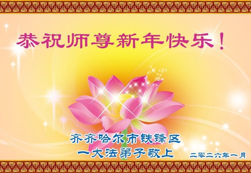 The greetings come from practitioners in these cities:Daqing, Qiqihar, Qitaihe, Harbin, Jixi, Mudanjiang, Heihe, Yichun, Shuangyashan, Jiamusi, Nenjiang and other areas.
