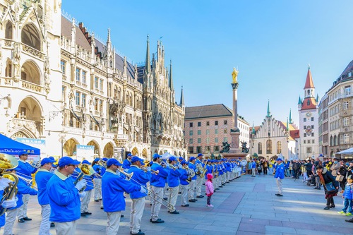 The European Tian Guo Marching Band performed at Marienplatz, Munich, Germany on October 29, 2021.