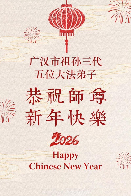 (Minghui.org) To celebrate the 2026 Chinese New Year, Minghui.org has received many greetings from families in China who practice Falun Dafa. They all express their deep gratitude to Master Li Hongzhi, the founder of the practice, and wish him a happy holiday.
