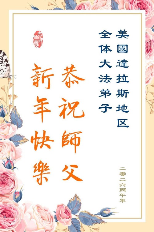 (Minghui.org) Falun Dafa practitioners in the Southern United States sent heartfelt New Year greetings to Master Li Hongzhi, with submissions from multiple regions and cities, including University City (Texas), Oklahoma, West Texas, Austin (Texas), San Antonio (Texas), Dallas (Texas), and Clarksville (Tennessee).