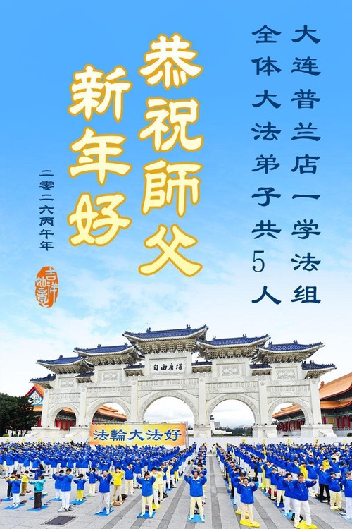 The greetings come from practitioners in these cities:Dalian, Huludao, Jinzhou, Chaoyang, Benxi, Fushun, Panjin, Anshan, Dandong and other areas.