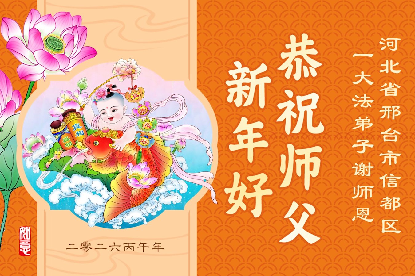 The greetings come from practitioners in these cities:Baoding, Hengshui, Zhangjiakou, Cangzhou, Xingtai, Handan, Tangshan, Langfang, Qinhuangdao and other areas.