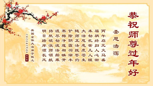 Individuals, families, and Fa-study groups expressed deep gratitude for Master’s compassionate guidance and protection, acknowledging his sacrifices along their cultivation journeys. Many greeters vowed to be more diligent in improving their character, fulfilling their vows, and saving sentient beings. Some practitioners shared poems praising Dafa and reaffirming their determination to follow the Fa-rectification. Across the messages, practitioners conveyed reverence, appreciation, and a renewed commitment to steadfast cultivation in the coming year.