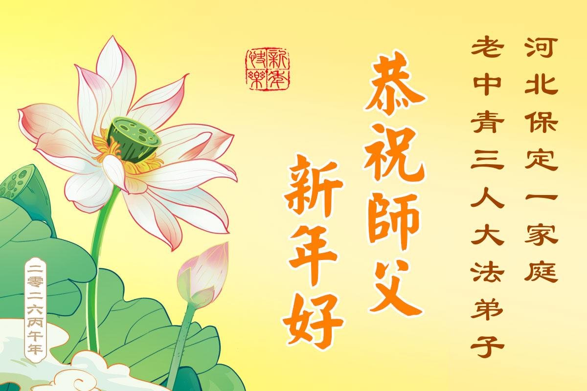 The greetings come from practitioners in these cities:Baoding, Tangshan, Zhangjiakou, Qinhuangdao, Hengshui, Xingtai, Handan, Chengde, Cangzhou, Langfang and other areas.