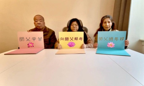 When we were in China, we could only respectfully wish Master a happy Chinese New Year through sending new year greetings. Now, we can send our new year greetings to Master through photos and videos, so we are very happy! Thank you, Master!