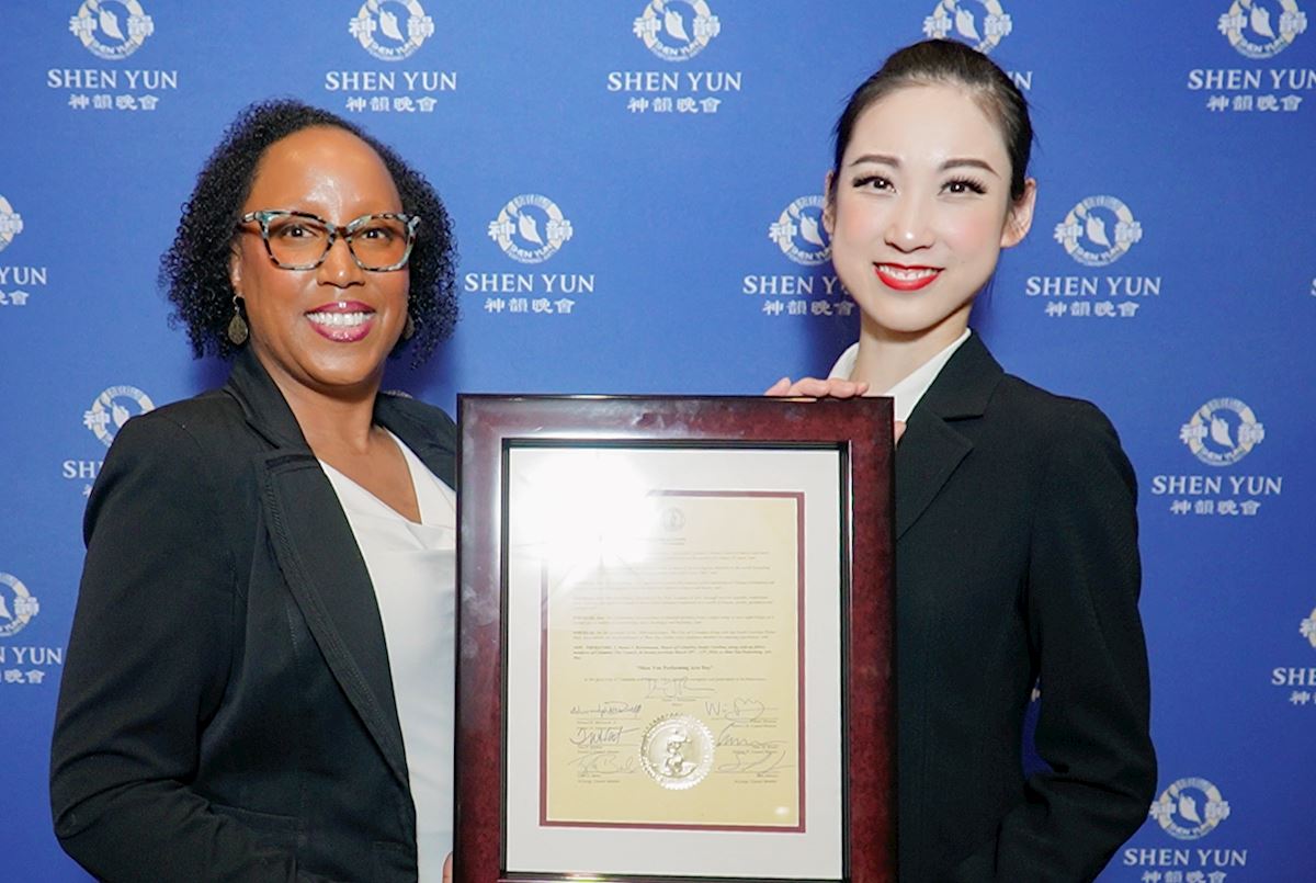 Shen Yun New World Company gave its first performance on March 10 in Columbia, the capital of South Carolina. On behalf of Mayor Daniel Rickenmann, the city Legislative Chief of Staff Chanique Belton presented Shen Yun with a commendation, and jointly declared that day “Shen Yun Performing Arts Day” along with Councilors Tina N. Herbert (1st District), Edward H. McDowell, Jr. (2nd District), William Brennan (3rd District), Peter M. Brown (4th District), and at-large Councilors Tyler D. Bailey and Sam Johnson.