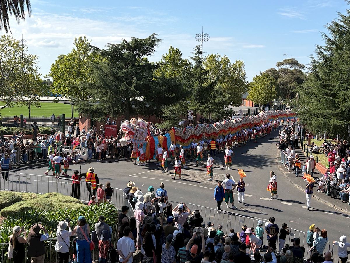 This year, the third generation golden dragon (Dai Gum Loong) appeared at the end of the parade. Claiming to be the world’s longest dragon, it needs 65 people to carry it, and the head alone weighs 27 kilos. The body is 125 meters long and there are over 7,000 handmade scales. The dragon makes an appearance in Bendigo once a year.