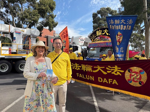 Major Events Officer for Bendigo, Raph Beh said about 60 groups participated in the parade, including many community and sports organizations. He praised the practitioners and said, “You are always so amazing. I think the locals love the Falun Dafa group’s colorful performance. You bring peace and pass on the value of kindness, and therefore you are welcome!”