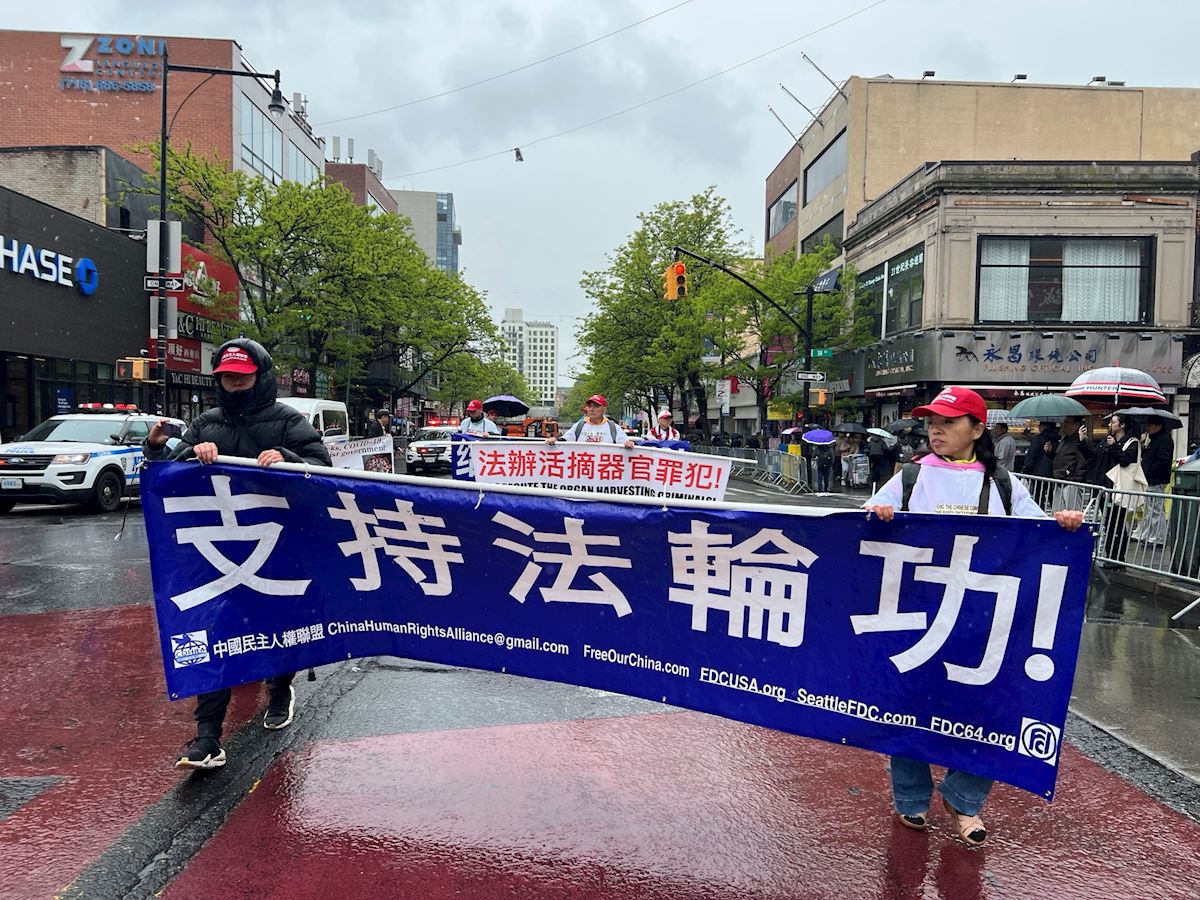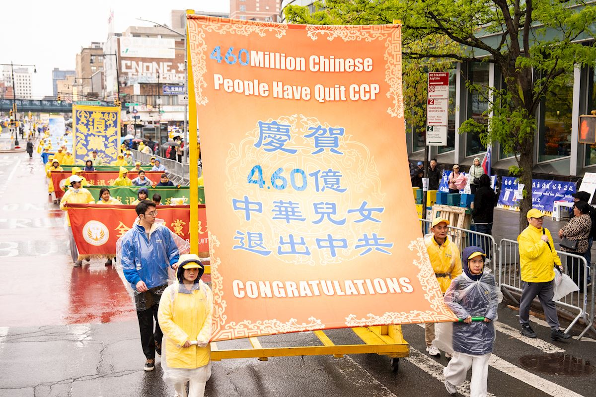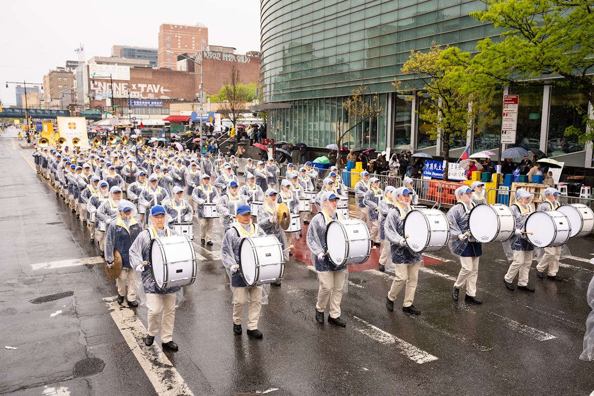 Led by Tian Guo Marching Band, the march in Flushing was composed of three sections: “Falun Dafa Is good,” “Stop the Persecution of Falun Gong,” and “Support the 460 Million People Who Have Withdrawn from the CCP.”