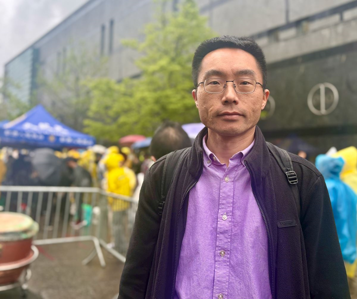 Moses, a well-known Chinese blogger, spoke at the rally that day to express his support for Falun Gong practitioners.