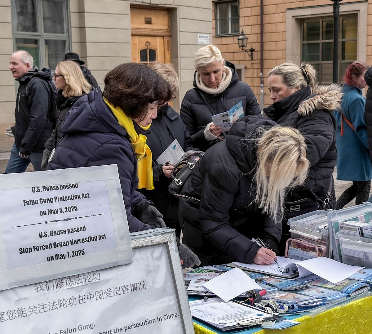 Practitioners also held an event beside the parliament building in the center of Stockholm on April 25, 2026. They told people about the CCP’s persecution and its state-sanctioned forced organ harvesting, as well as its transnational repression. They called on the Swedish people to help stop these human rights abuses.