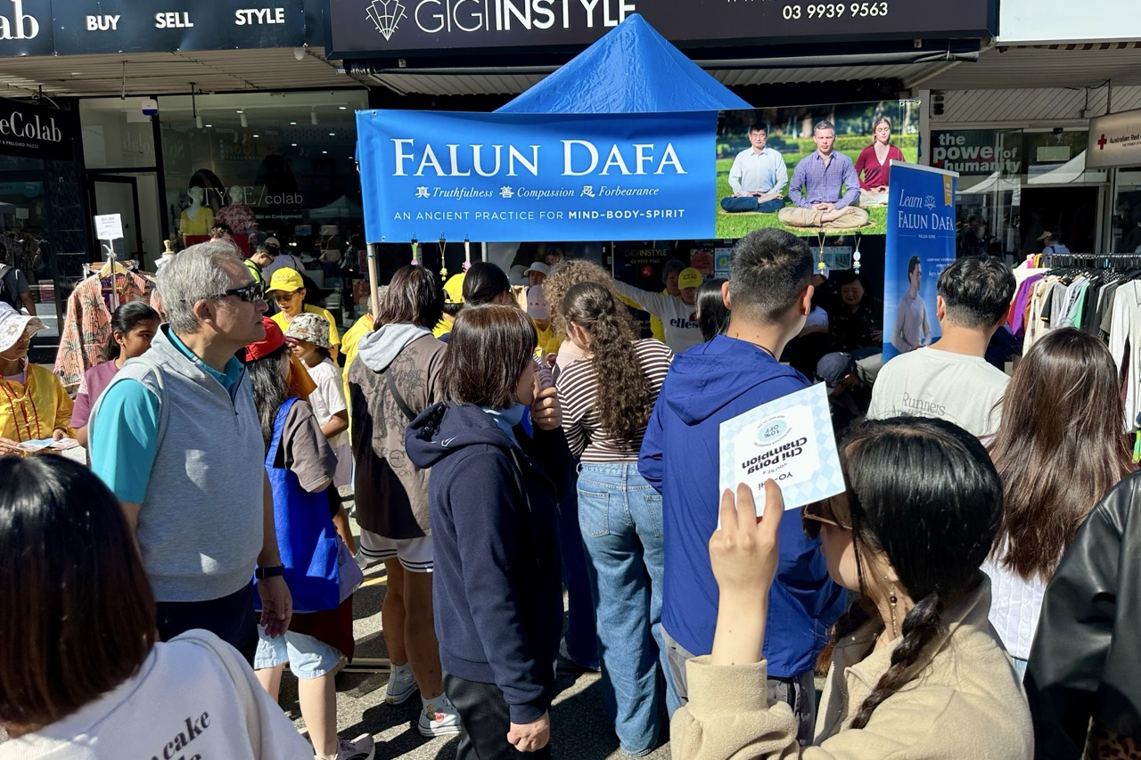 (Minghui.org) It was a bustling affair at the Glenferrie Festival, held in a well- known business district in Hawthorn, where Falun Dafa practitioners’ performance kicked off the festival.