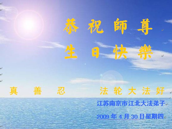 Practitioners from Jiangbei, Nanjing, Jiangsu Province Respectfully Wish Revered Master Happy Birthday! And Celebrate the 10th World Falun Dafa Day!