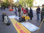 In Kosice, a reporter from a local weekly magazine visited us and told us that he would publish a picture of the gathering together with a short article. In Presov more members of the media arrived, including the daily magazine 24 Hours and a reporter from the East Slovak press agency SITA. The local TV station also came and interviewed several practitioners. The reporter from the TV station was moved and immediately signed our petition against the persecution.