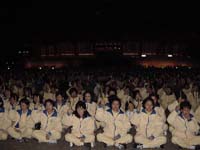 Over 1,000 Falun Gong members from several Asian countries held a rally last night at Chiang Kai-shek Memorial Hall in commemoration of members who have been killed or persecuted in China. PHOTO: GEORGE TSORNG, TAIPEI TIMES