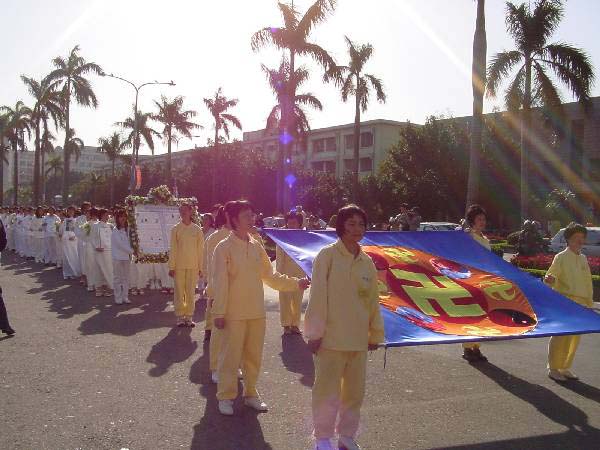 TAIPEI: About 2,000 followers of the Falun Gong spiritual [group] banned in China marched through Taipei yesterday, mourning their mainland brethren and urging Taiwan to invite the group' leader to visit. They carried flowers, banners and pictures of what they said were 103 members of the sect tortured to death in police custody. '' persecuting Falun Gong,'' read a huge banner. Chang Ching-hsi, an economics professor and president of Falun Gong' Taiwan branch, asked the government to invite the [group ...