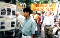 Promoting Falun Dafa in front of the Freedom Plaza on January 1, 2000