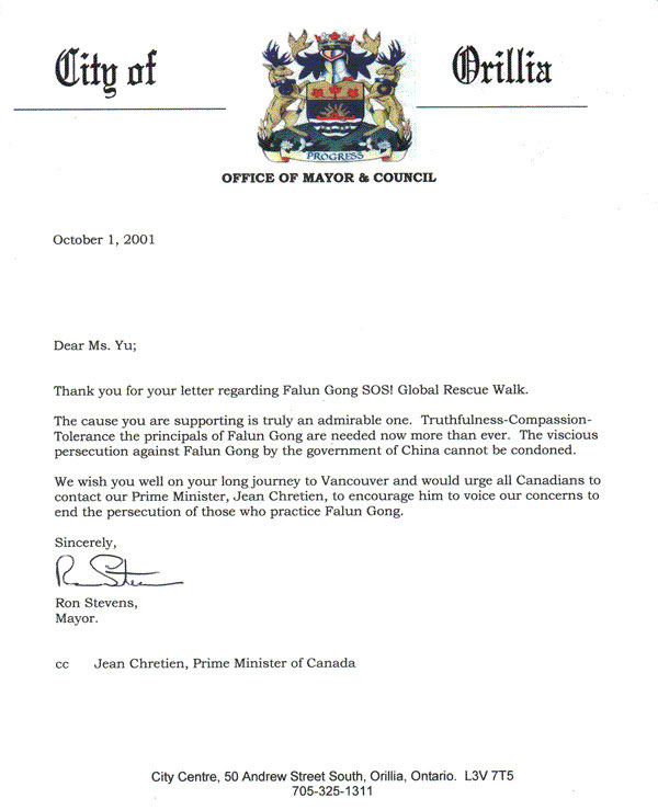 Yesterday when Toronto practitioners participating in the SOS! Global RescueWalk Across Western Canada reached the City of Orillia, a gentleman handed them a letter from the Mayor. It was a letter to resolutely support the SOS! Global RescueWalk Across Canada.