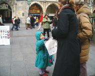 Maria Square is located at the center of the city, and our demonstration there attracted many visitors. Practitioners explained to them the beauty of Dafa. Practitioners' benevolence and the bloody persecution formed a strong contrast.